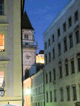 Rathaus tower with Fortress in background