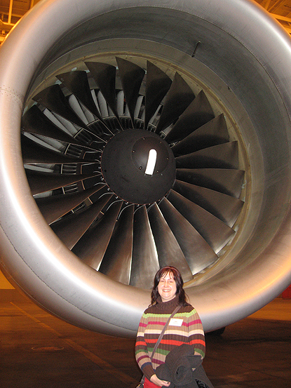 April 2013So, back to reality after my awesome girls weekend in Phoenix in late February. In yet another attempt to lose weight, which at this point is getting quite frustrating, I joined NutriSystem and have been on the program since February 23rd or so. I used to be quite thin, so it's concerning to me that I've gained a good amount of weight since moving to CO. Now granted, some of that is muscle development since I play hockey, and some of that is attributed to my desk job, but still, I'd like to adopt a more "Coloradan healthy lifestyle". First I tried getting a doctor to investigate whether I might have the start of thyroid issues--my mom and aunt both have severe thyroid conditions, and I have most of the symptoms of hypothyroidism. They tell me I'm fine and to exercise more. So despite the fact that I've been playing hockey 2-3 times a week most of the year, for several years now, and often supplement that with biking on our recumbent bike in the mornings, there was even a whole year I stopped playing hockey and went to the gym 6 out of 7 days a week. Didn't lose a thing. Next, I tried fixing my diet--I went to a dietician who said that my diet was very good already, and just needed a few adjustments such as more fiber. Made no difference. So, here I am, trying NutriSystem. To be honest with you, the food is really quite good, and they give you a good variety. For my second month, I upgraded to the plan where you get both their standard food and frozen food, so that gives me even more options. And you have to supplement their food with fresh groceries, so you're learning how to eat multiple times a day, in smaller, correct portions, and learning what's healthy and what isn't. I haven't been hungry and only one or twice have I gone off the plan for a burrito or cheeseburger. :) Now, the question you're all asking is...how much weight have I lost? Nothing. Yep, nothing. Oh well. Any suggestions out there on what to try next?? :) In other news, I also started volunteering. I am one of the graduates at this current session of Flight Without Fear, which is a course designed by a women's aviation group, the Colorado 99's, together with United Airlines, to help people overcome their fear of flying. I took the course in the fall of 2009 and because of hockey, never was able to volunteer since the course always conflicted. Well, because of my hip injury (which is not exactly healing like I hoped it would), my calendar is free! The class meets every Tuesday night at the United Training Center in Denver, and it covers both the education side of flying--how a plane works, weather, flight crew training, air traffic control--and the psychological, mental and emotional issues behind anxiety and having fear take over. The psychologist is a pilot herself, so she has the perfect background and skill set for this course. In addition, we also get to take field trips, such as to the United maintenance facility, to walk around and through some of the airplanes that they are currently working on! Since we got to take photos, I went crazy. :) The first plane we got to check out is a Boeing 777! The guy in the bottom of the photo is Nick, the mechanic who took us on the tour. He was super nice and helpful, told us all about everything!