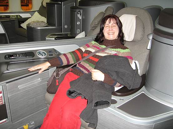 We walked through the whole plane, so I also could not resist getting a photo in First Class!
