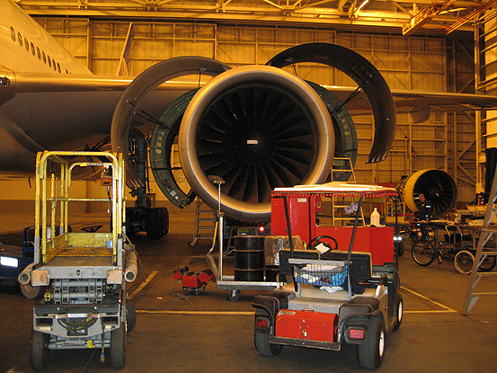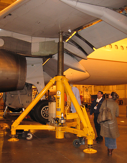Lastly, we visited an Airbus where they had just replaced the whole landing gear on one side. Here's the jack used to lift the plane!