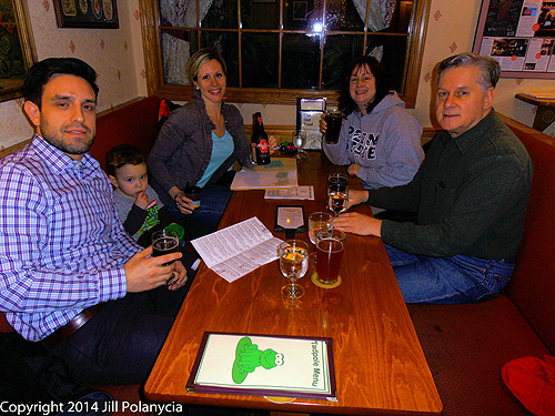 That evening we had a great dinner with everyone. On Friday, mom and I scrapbooked like crazy for most of the day. She had printed photos of Leonardo from birth to this past Christmas, she had all of her themed papers and embellishments at the ready, so we worked like crazy on layouts for Leonardo's first album. We got a lot done! That night it was time to relax with the fam at a British pub.