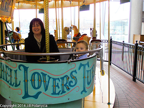 On the 3rd my parents had to babysit so after we picked up Leonardo we went to playtime at the rec center. Then after lunch and a nap we spent the afternoon at the Strong Museum of Play, an incredible children's museum in Rochester. That place is AWESOME, even for the big kids! We were there over 3 hours and only saw around half of it! First, we tried riding the carousel outside of the museum. He's still not sure about riding a horse so we stuck with the tub.