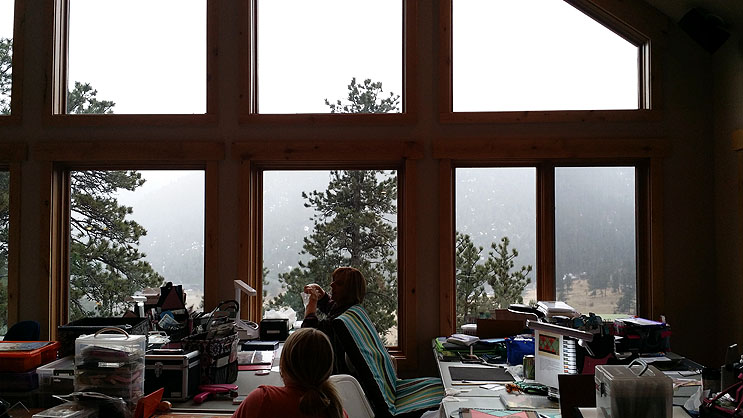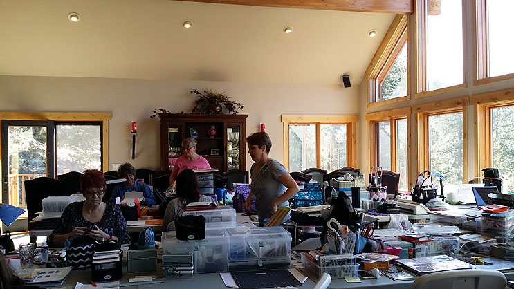 For my next adventure, I went on a scrapbooking retreat with my friend Lisa to a house in Estes Park in the mountains. It was run by our Close to My Heart rep (a direct sales scrapbooking company) and there were 22 gals. I didn't know anyone well other than Lisa, but a couple of gals come to the Scrapbook Shack now and then so I've seen them in passing. But, throughout the weekend we got to all know each other better and have a LOT of laughs!