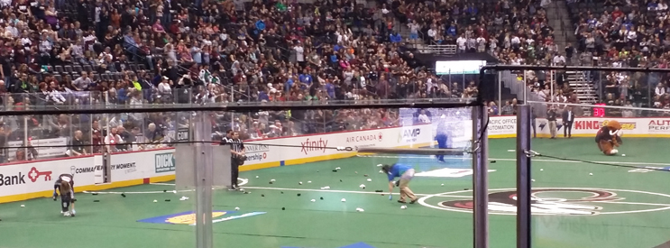 Here are the socks on the field. On the right you can see our mascot, Wooly, helping to pick them up!