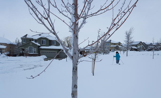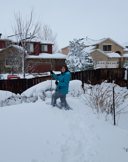 This is out front, where there is the road to the left and then I'm on this landscaped section. I know there are some rocks and such in this area but the snow was so high that we couldn't tell if we were walking on them!