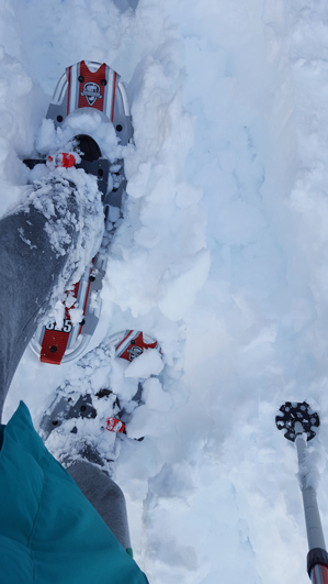 It's hard to see the perspective in this photo but the footprint to the right of my left foot is around two feet deep.