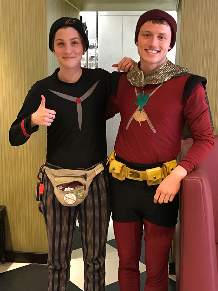 And the delivery drivers who create their own super heroes and costumes. On the left is Wind Woman and on the right is Beet Man.