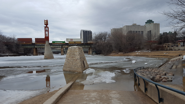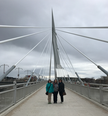 Then we walked off our Bronuts by going to The Forks, a section of town near the river that is a really pretty outdoor area. The famous bridge was quite cool, it looks like a jet!
