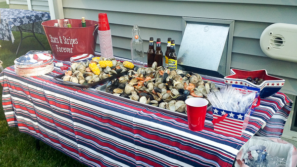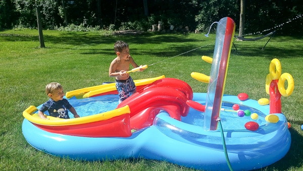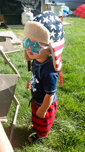 Here we are celebrating the Fourth: A makeshift pool Erica got that was a big hit with the boys and all of their cousins and friends.