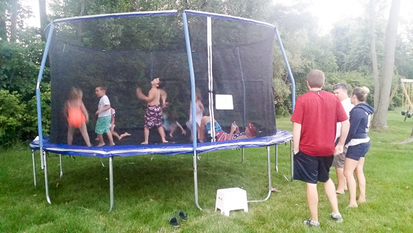 Gino's sister and brother-in-law showed up with a TRAMPOLINE, which the grandpas and dads spent the whole day putting together. It's a hit, though, and so much fun!