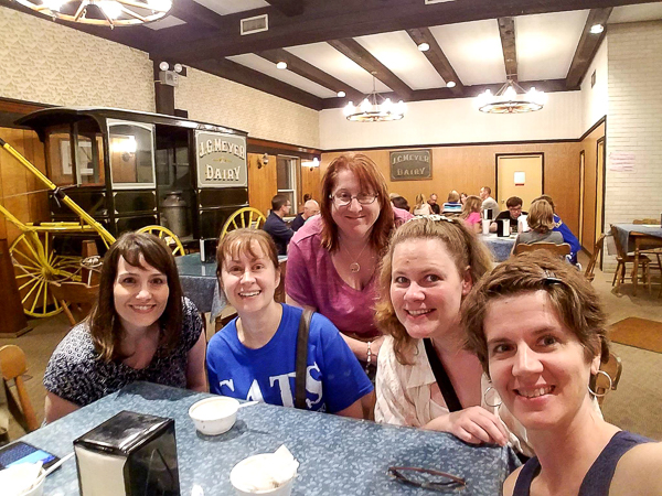 Yes, I Need an InterventionThe weekend after the fourth, mom and I drove down to Lancaster, Pennsylvania (trip #2) for our annual Creating Keepsakes scrapbooking convention. We always have a blast, and this year, it was just the two of us so we hit the road bright and early on Thursday morning so that we could hit local scrap stores en route! Who knew that PA had like 7 of them within our path!? Some weren't open, some were a little out of our way, but I managed to map a route that allowed us to hit four of them. I did not spend a ton at each one, but did find some amazing things--and every one had different manufacturers and products! AND none of those products were at the convention! Score! If you're down with spending hundreds of dollars, that is. This year, I was trying to behave and keep to a budget, but all that went straight to hell when I got Shiny Object Syndrome at the Queen and Company booth and bought a ton of expensive stuff. Seriously, I spent a record high amount of money. Damn them. We took one fewer class than usual, but I really enjoyed them all. I took a class where we made pretty marine life-themed cards with 3D flowers, a scrapbook layout about cats, another layout with some of the infamous expensive Queen and Company products, and an amazing watercolor class that just blew my mind. Who knew I could watercolor!? Of course, I needed around $100 of stuff to replicate the technique at home...but meh. We stayed in a different area of Lancaster than last year, ate at different places, sat in the pool's hot tub the whole time, and even got to drive through a bit of Amish country. The last local store we visited was nestled in someone's house in what looked to be an Amish neighborhood--a buggy even went by while we were shopping! Too Much Drinking with the SistahsDrove back to Rochester on Sunday, and then I hung out with the fam through Thursday afternoon when I hopped onto a small flight to DC to begin mini-trip #3: my annual Beaver Sisters Reunion! This year we returned to Penn State so that Angelina and her little 6-month-old cutie Aquila could join us! It also happened to be the weekend of the Central Pennsylvania Festival of the Arts, aka ArtsFest, that none of us frequented much when we were in college. Four of the five of us drove up to State College (trip #3!!) from DC on a lovely Friday morning, and had a blast chatting in the car. We stayed at Dana's parents' house like we did last year which conveniently is super close to an amazing winery. That was activity #1. We did a tasting, bought a couple of bottles, and drank until a group of seniors started taking over and setting up the band. Yeah.... Then we met up with Angelina and Aquila for a lovely dinner, followed by awesome ice cream at Meyer Dairy, and drinking at the house until 1am or something stupid like that. Here we are at the dairy that hasn't been updated since 1962: