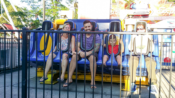 Erica, Gino, Leo and I on a ride that goes up and down, dropping us at random times and random depths.