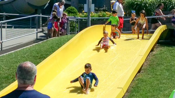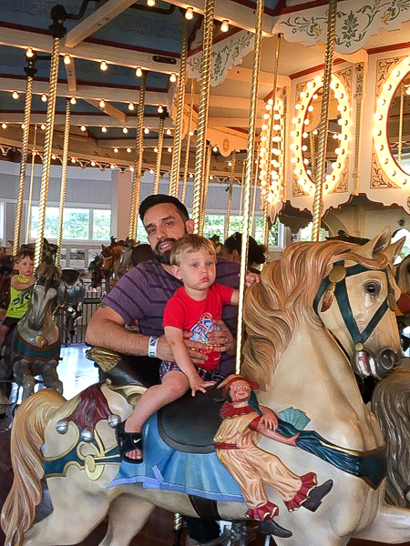 We spent a few hours in the water park too, of course. The boys love the water. This year, Leo also rode the adult water slides with us, including a really tall one that Erica and I were intimidated to ride! But he was a champ. Domenico still didn't quite figure out the slide concept; he kept getting stuck! And of course Leo didn't wait for him (Leo's at the bottom and Domenico is in the white and gray shirt trailing behind).