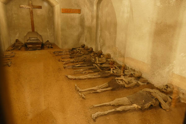 We also roamed around town, shopped for clothes, and had an amazing dinner at one of the best places in town. There was a party for our former CEO who retired a few months ago, but screw that! I didn't even know the guy. Lee and I enjoyed some girl time. So, that was Monday. We had just a wee bit of time on Tuesday inbetween meetings and yet another team dinner, so once again the two of us bolted down to the other side of the city to visit the Capuchin Monk Crypt. This crypt holds both a variety of monks, and townsfolk who contributed greatly to the church and requested to be buried here. They were in a different room encased in glass coffins with their names and dates above them. The poor monks are lying on the ground as you can see here with bricks for pillows. Doesn't look too comfy, but at least it's temperature controlled, like they notice...