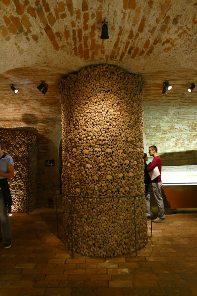 Anyway, Lee's and my first stop was the second largest Ossuary in Europe (behind the Paris Catacombs) beneath St. James church. This is your standard Ossuary scene (just like Kutna Hora's Bone Church we visited the day after we got married): there is a church with a graveyard that got full, so they dug everyone up, dusted them off, and neatly arranged them. They say there are around 50,000 bodies in here, though all you can see are leg and arm bones and skulls. I don't want to know where the rest of the parts are!