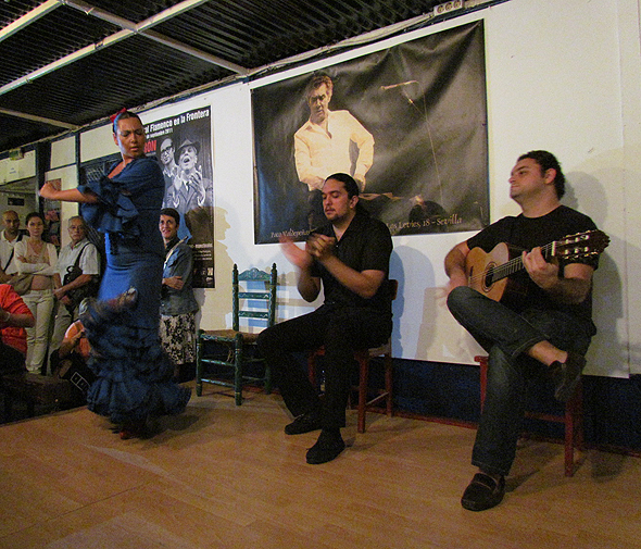 The Flamenco show itself was ...interesting. I didn't really know anything about Flamenco so I wasn't sure what to expect. There were three artists--the Flamenco dancer, the singer and the guitar player. They started off with a long song and clapping, no dancing. A couple of songs later, the dancer started up, and man she was fast! She danced with fury, just not for very long at a time. They'd do a show for like 20 minutes and then take a 30-minute break and just keep repeating.