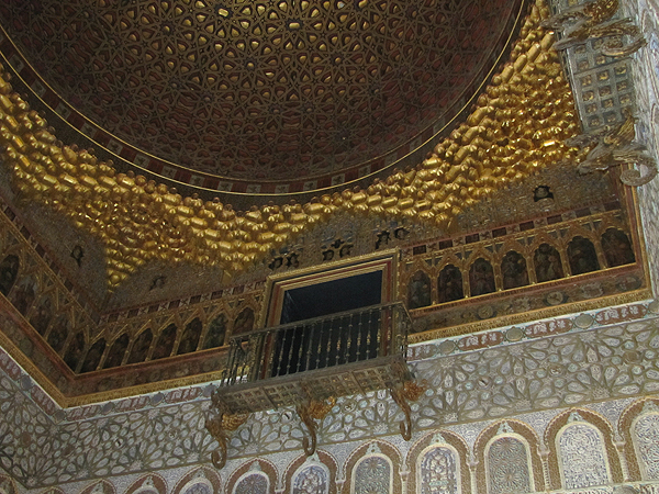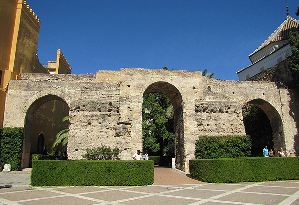 And you get the point...the next day, we went to the ALCAZAR, which is a castle/palace/gardens spanning centuries of history and various periods of architecture. It's a miniature version of the Alhambra in Granada, that took us all day to go through when we went to Spain in 2011. Here is the oldest part that you walk through when you first enter.
