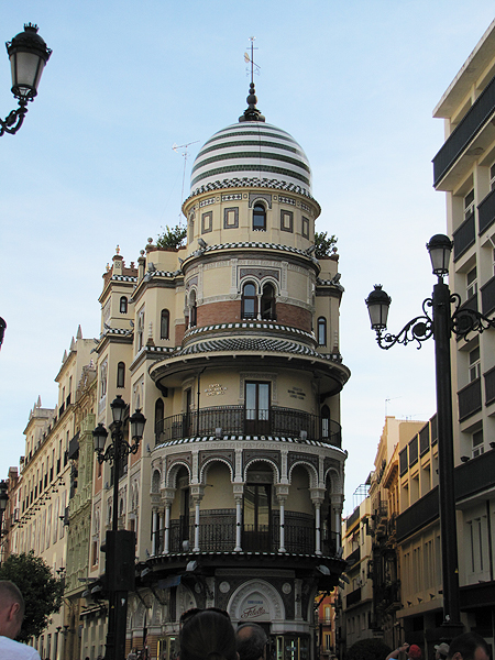 December 2012Well, as promised, I was going to continue with Part 2 of my trip to Portugal and Spain. But first, an awesome announcement. I fell in a hockey game on Nov. 27th, and immediately had pain in my left hip. I proceeded to go to Vegas for 5 days and walk up and down the strip numerous times (that'll be the subject of January's web site) and stupidly gave in to "hockey peer pressure" and skated in my team's championship game (we lost miserably) when I returned. The pain has not increased or decreased, so a week later I finally saw the doctor about it. As of today, Dec. 7th, the constant, dull pain in my left hip is being diagnosed as a pelvic fracture. Not bad enough to need anything other than a lot of lying down and sitting to not put weight on it. An official diagnosis by an orthopedist is happening on Dec. 11th, so we'll see what they say. Anyway, on to Seville, Spain! Remember that there is a whole Seville album if you click on the PORTUGAL PHOTOS link on the left! I basically went CRAZY taking photos of the amazing architecture, a beautiful mixture of Arabic/Moorish and European influences. Here are a couple of my favorite buildings: