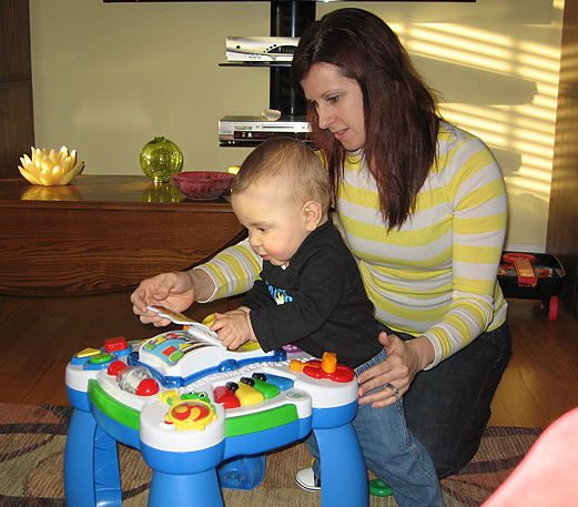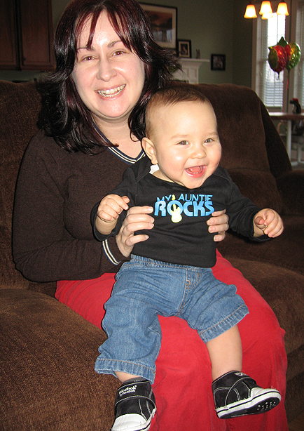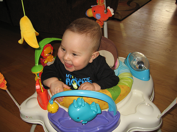 February 2013Well, this year has not gotten off to the best of starts. First, I'm still on Injured Reserve with my sprained ligaments in my left hip. They are slowly getting better, but now I'm 2 months down out of 3, and the hip hurts mainly when I'm twisting it, like to get in and out of cars. You never realize what muscles and such you use to do simple daily activities until you injure them!! JC started a new job on January 7th, at Cisco. He is in Deployment Automation, which I know means nothing to all of you out there who are not tech nerds. Basically, he is involved in building, customizing and deploying cloud-based systems for internal Cisco groups as well as external clients. He works from home most of the time, and is working with some long-lost friends once again, so I think those aspects have been fun, despite the fact that he's not yet fully up to speed on his role and job responsibilities. We shall see. On January 13th, my last remaining grandparent passed away (my dad's dad), so on the 15th I flew to Rochester, NY, to attend the services. It was an exhausting trip because most of my relatives live in Buffalo, but my parents and sister live in Rochester, which is 1.5 hours away. So I took a 6am flight from Denver, got to Rochester at 3pm, and we spent the evening in Buffalo at the wake. Drove home, got to bed at midnight, and spent all day Wednesday in Buffalo attending the wake. The only good things that came out of this is that I got to see my relatives and family friends again (I last visited in July, so 6 months ago), and we had dinner at Chef's in downtown Buffalo. YUM. That night, some relatives offered to let my parents and I stay with them because the funeral was at 8:45am the next day, and they didn't want us to have to drive back and forth. That was really nice, actually, because these are relatives that I don't normally see during typical family functions--they are my dad's aunt and her husband, so they are a bit removed from us to come to things like Christmas. So it was really nice spending time with them, as I can't remember the last time I got to do that. The funeral was on Thursday and it was very nice. They played TAPS at the cemetery and that just always gets me watery. What struck me, though, was that this is the last time I'll be hearing TAPS. Both of my grandparents were in WWII, and strangely enough, both were medics. I didn't know that until two years ago. After the funeral and the very nice Polish traditional lunch, my parents and I went to the Sabres store at the First Niagara Center (where the Sabres play) so I was able to restock my Sabres clothing. Then after a quick trip to the Buffalo scrapbook store, we headed back to Rochester, tired and weary. On Friday, we had nothing going on, so after a nice sleep, and mom and I playing in her scrapbook room, Aunt Cathy, Erica and Leonardo came over for dinner! I was so glad I was able to see and spend some time with my adorable, laughable godson and nephew! So, I took a ton of photos that night and here are some of my faves. He loves his little activity center that bounces! He's a bouncing maniac!