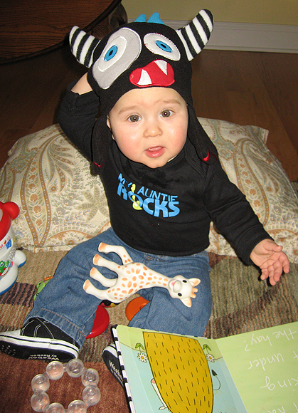 In his winter hat, and driving around in his Jeep with his Great Aunt Cathy: