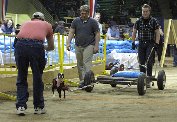 They also had dog competitions in one of the stock display arenas. He's pulling a cart with some weight on it.