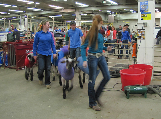We also visited the stock pens where some sheep were getting their exercise. I swear those are 1980's leotards on them, and their black legs look like leg warmers!