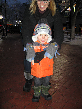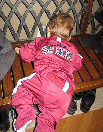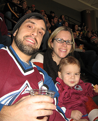 February 2014January was a nice, mellow month after the holidays. I got a lot of scrapbooking done, and at the end of the month we had a very special visit from my sister, brother-in-law and nephew! They wanted to come visit us again before Leonardo turned 2 years old because he could fly for free, and they only came out to visit us once many years ago. So, a quick weekend visit was in order! Unfortunately, it happened to be one of the coldest and snowiest weekends we've had this winter. The high every day was in the teens to 20's, and my darling sister didn't bring any sweaters for Leonardo. : \ Around the freezing cold, and Leonardo's naps, we managed to do a few things. They arrived on Friday afternoon and that night we walked around Boulder a bit. Here's the little stinker taking his gloves off. On Saturday, we went to a Colorado Avalanche hockey game. Gino, my brother-in-law, is a huge Avs fan, and so we went to see them play against the Buffalo Sabres. Not a single one of us rooted for Buffalo, but it was a total blowout and the Avs one by something like 8-1! We were all decked out in our Avs gear! Erica and Leonardo walked all around the arena during the game and even got a certificate for Leonardo's first Avs game!