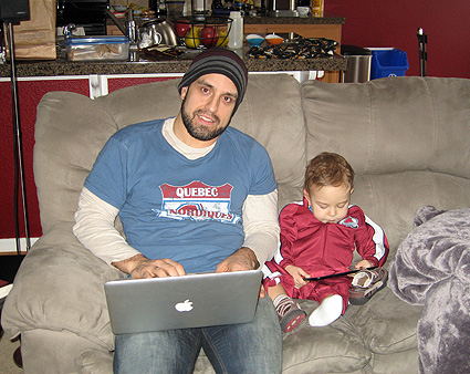 On Sunday, we hung out at home and watched the Superbowl. Denver was sucking so badly that after halftime I decided to abandon ship and play with Leonardo instead. They left early Monday morning, and Monday night JC and I went to see Alton Brown live at the Denver opera house. He was hysterical! He made vaccuum-frozen ice cream in seconds, and built a huge Easy Bake Oven and cooked a pizza on stage! Now, when the fam was here to visit, Leonardo did all sorts of awesome things in our house. He peed on my carpet, he threw up a few times, and he had other bowel incidents. We didn't think much of any of it because he wasn't eating what he normally eats, his schedule was all messed up, and we ran him ragged. Well, turns out the little guy was probably the first casualty of the FLU because when we got home from the show, I came down with it as well! The next day we found out that Erica and Gino both got it Monday night too, and then JC was the last to fall two days later. Plague bearer! |