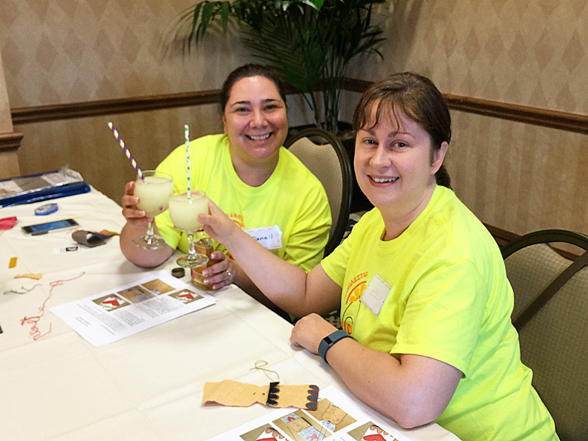 Next we had a class with Stephanie Ackerman who is a well-known crafter and teacher in the industry. We made mini albums and stitched together a cute felt book for holding sewing needles. After lunch, we scrapped, did make-and-takes (free little projects that some people brought for everyone) and had margaritas.