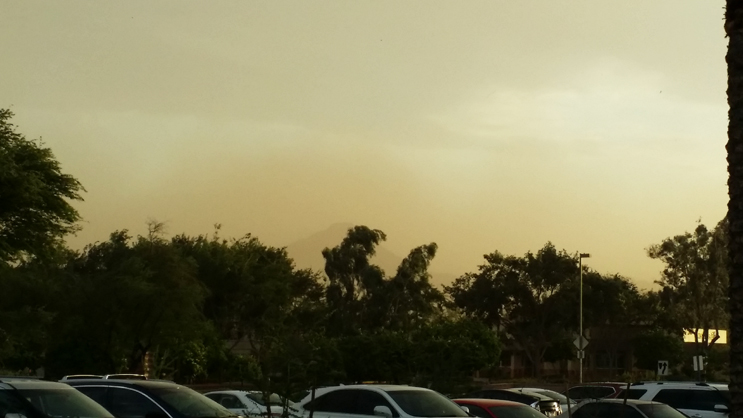 Then as we were eating dinner everyone's cell phone suddenly made this strange sound. We all had an alert about a dust storm. So naturally, I went outside to take pictures of it!