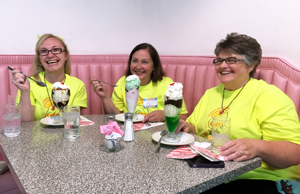 Here, left to right, are Melissa, Cathy and Kristie enjoying their creations. I had what Cathy had it was awesome!!