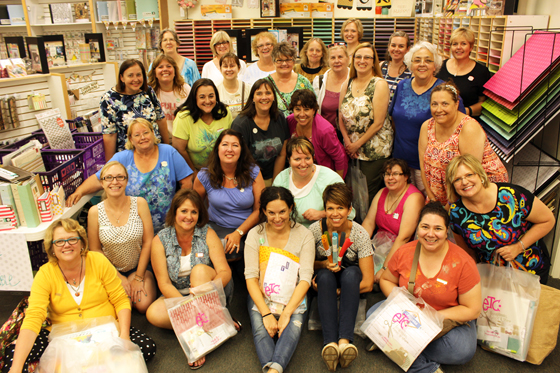 Everyone trickled in on Friday and at 5pm we formally met to begin our activities. We got to know more about each other through a postcard swap (we all made postcards with some info about ourselves and everyone got to take them home). After dinner at the hotel we took a field trip to the Scrapbooks, Etc. scrap store where we were unleashed like kids in a candy store!