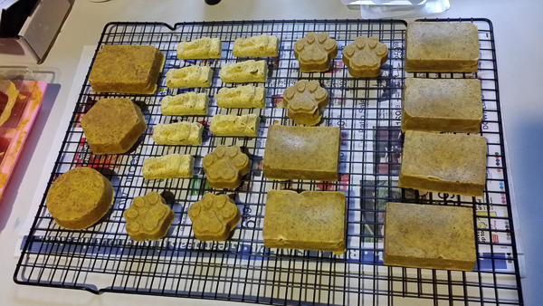 And a batch of cold process: vanilla-pomegranate-apricot scrub soap. Yes those are Rapa Nui soaps. :)