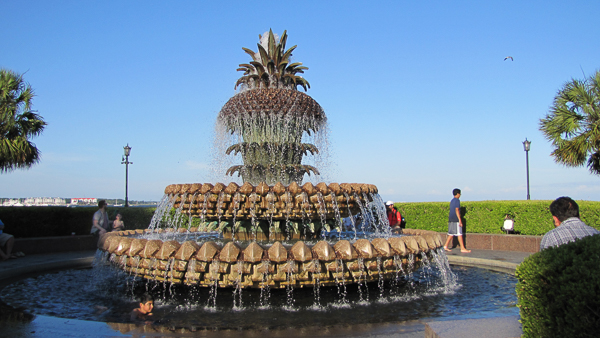 We found the water and sat there for a while people-watching, as well as admiring this lovely pineapple fountain.