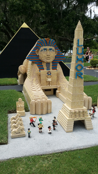 Next, the Land of Adventure, was Egypt-themed, including adorable cartouches marking the building that housed a ride where you rode in a car through an indoor adventure and shot lasers at Lego items. When you hit the target, the items moved. Pretty badass.
