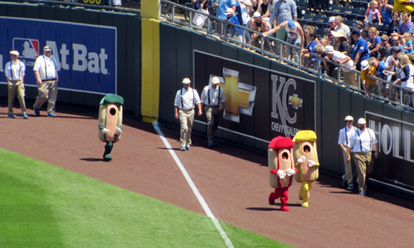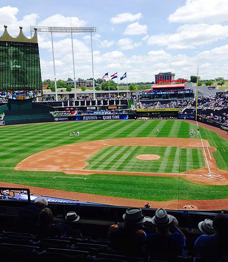 When there was absolutely nothing left to do in Des Moines, we headed out to Kansas City. First we crossed straight through Missouri to Kansas and had lunch in Leawood, KS. Then we went back into Missouri and spent the evening driving around KC, getting lost, touring the ghetto, and generally having a great time. The next day, Sunday, we attended a KC Royals baseball game! It was also National Negro League rememberance day so all of the grounds crew were dressed in 1920's-era newspaper boy attire AND we all got a free FEDORA!