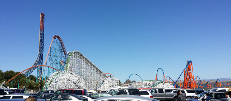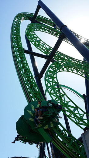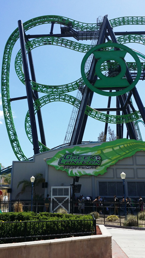 In fairness, this Six Flags has almost as many coasters as Cedar Point does yet it's one-third of the size (maybe one-fourth). The entire park practically is coasters. I counted maybe 5 "family" rides, which are non-coaster rides suitable for a wide variety of ages and heights--stuff like the Pirate Ride, swings, etc. Weird. We also experienced a LOT of broken rides. No joke, we got off The New Revolution and walked over to Tatsu (one of their best coasters; you ride it on your stomach!!), and it had already broke. The park was only open 2 hours. We had lunch and by then the ride reopened. That happened to us a LOT on Sunday: we were able to walk right onto several coasters that had just recently reopened after being broken. And oddly enough, THAT does not cause me anxiety!! Hands down the craziest ride that actually messed me up a bit was the Green Lantern First Flight. This thing was WEIRD. You sat on the sides of the track, 2 facing front, 2 facing back, and the whole cart flipped you upside down at random times throughout the ride. Half of the time, you could not see the track in front of you, so you had no idea when it was going to dump you! Truly a unique experience! Short but crazy! If you click on the link, watch the video. :)