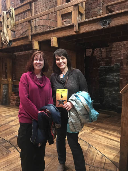 At night, two of us got tickets to see Hamilton and it was MILD-BLOWING. Every bit as good as they say it is! If you get the chance, go! But, not only did we see the show, Steph's cousin Anmaree is the Props Manager and she got us BACKSTAGE! We got a full tour of the stage area, and got pics standing on stage!