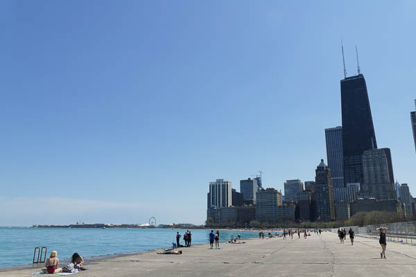 We then hung out with Anmaree and her wife Mel for hours on end and it was a ton of fun. Day two: we walked and walked and walked! We checked out Oak Street Beach not far from our hotel, where a ton of people were out enjoying the gorgeous 80-degree weather on a lovely Saturday. There were great views of town from there, too.