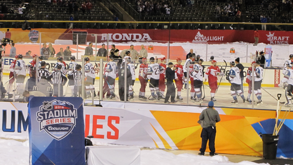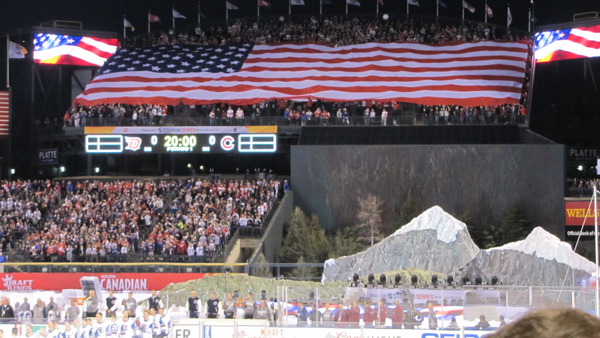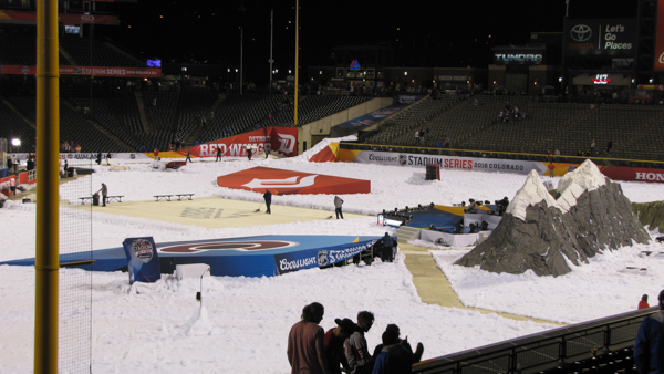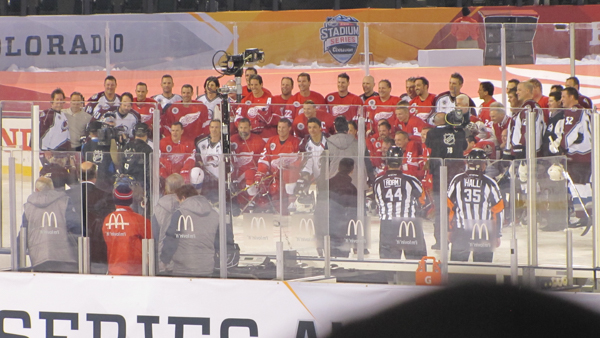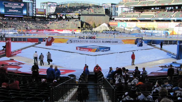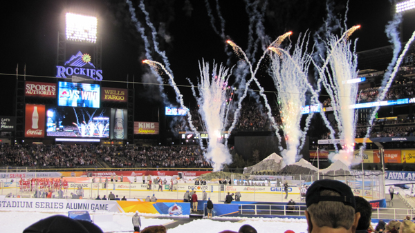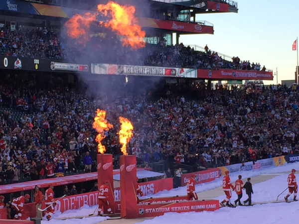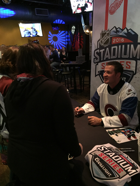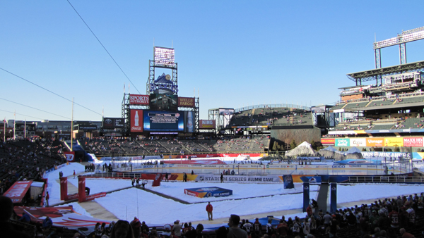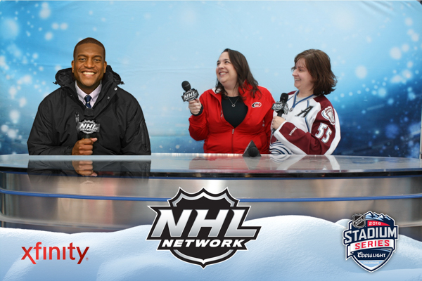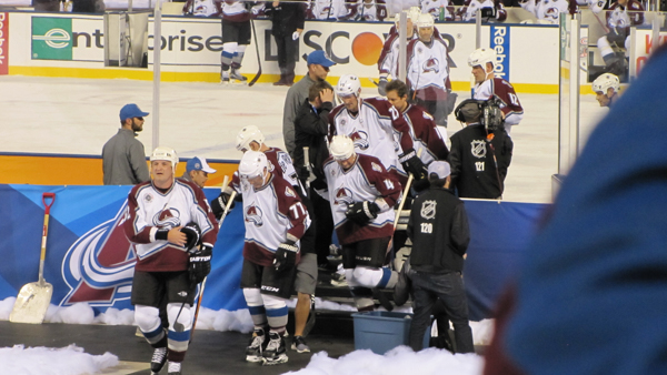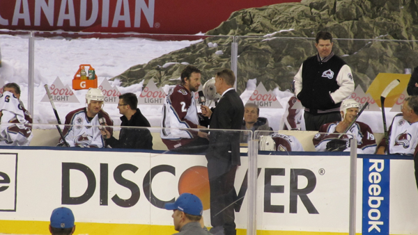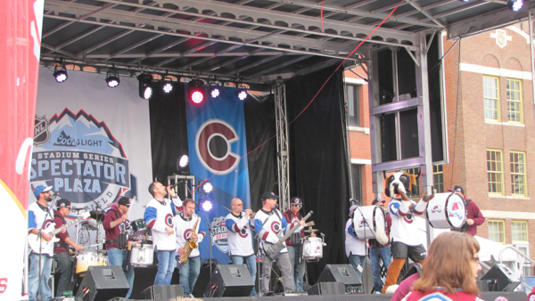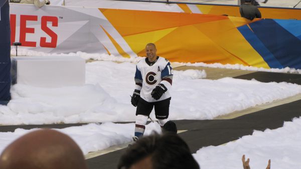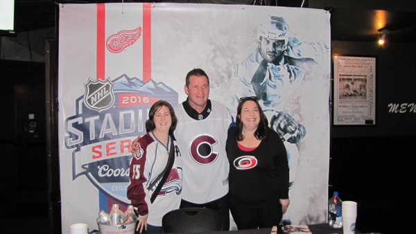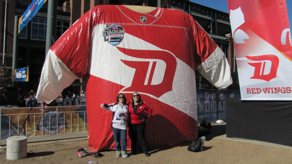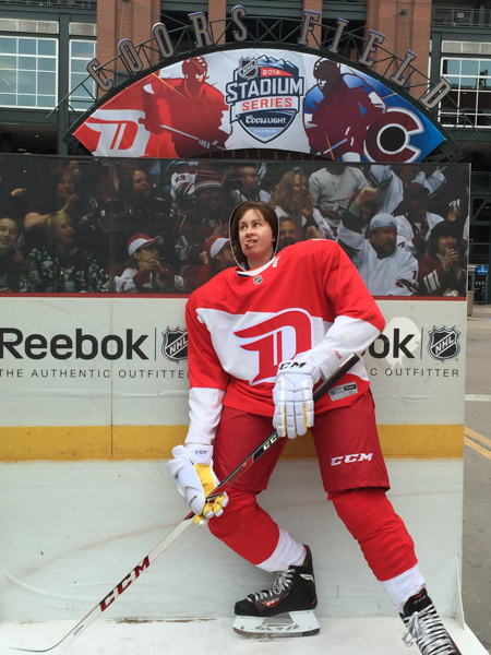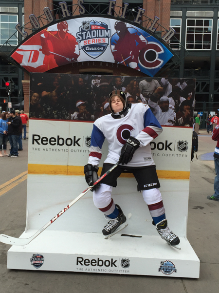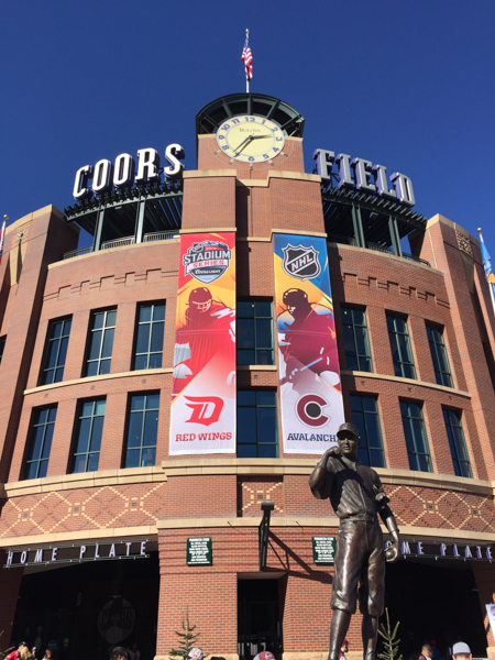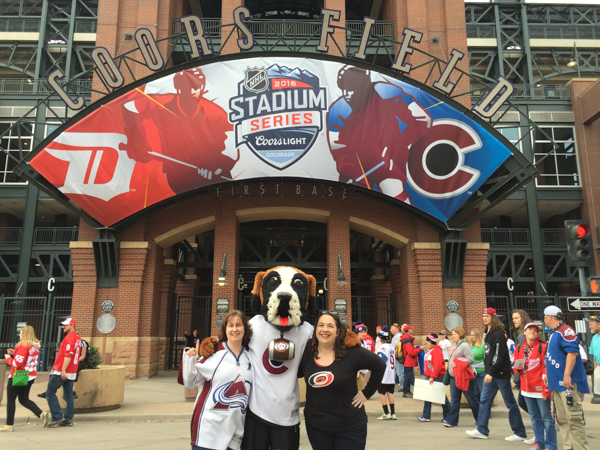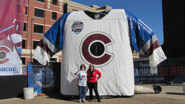 So, the big event in February was attending the NHL Stadium Series outdoor game between the Colorado Avalanche and the Detroit Red Wings (which has been a very heated rivalry for decades). These outdoor games have grown in popularity over the last few years and several of them are scheduled every year. This was the first time Colorado got an outdoor game so I just HAD to go! Mind you, it was NOT cheap, but it was TOTALLY worth it! Beware, I'm putting up a ton of photos! My friend Leah flew in to attend with me since she is a die-hard hockey fan and had an outdoor game on her bucket list as well. The event spanned two days, where Friday night was an alumni game, and Saturday was the regular season game. During both days, there was a Spectator Plaza outside of the arena (which was our baseball stadium, Coors Field) complete with skills games, a DJ, party tents, giveaways, and other fun stuff. Of course, we took lots of photos and did most of the stuff. Here we are with inflatable jerseys, like you do. I am giving a thumbs down to Detroit and a thumbs up to Colorado in case you can't see that. |