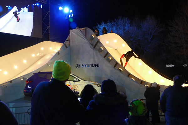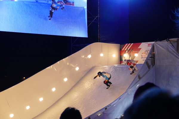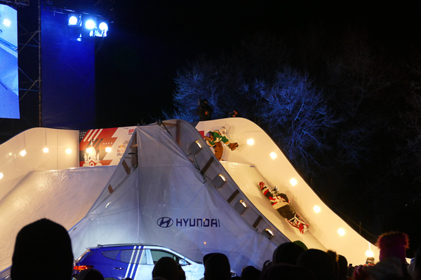Then a guy rode the course on an ice skate/skateboard contraption. I don't think he made it up this hill.