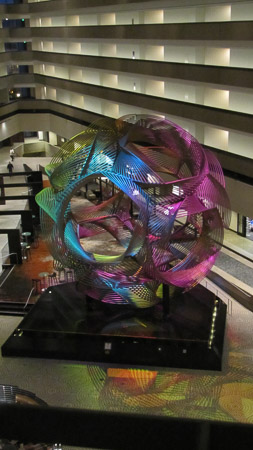 On Tuesday we met up again with Daner for an amazing three-course meal at Chiaroscuro. It was very upscale until we showed up, but the manager working that night appreciated our cluelessness and had a blast with us. I had an octopus salad, brisket ravioli, and three cheeses for dessert. YUM! Here are a few other highlights: The art in the Hyatt lobby that changed colors every few seconds.