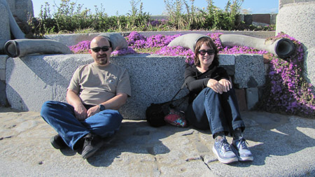 Next stop was Loved to Death, a two-store set selling macabre stuff. Like, braced baby shoes from the polio era, French tomb plaques, two-headed animal skeletons, you know, the usual. I ended up buying a gorgeous octopus tentacle necklace. No it's not a real tentacle, but I wouldn't put it past them! Then on to the Wave Organ. Built in 1986, it's supposed to play music when at high tide the water rushes into the tunnels. But all we heard was gurgling because the tubes are eroded and broken. Turns out, this mishmash of stone and cement comes from a demolished cemetery! No wonder I liked it so much.