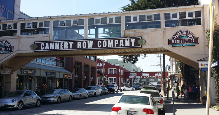 I flew out on a Monday, arrived at noon before almost everyone else, and spent the afternoon editing a proposal, then wandering the streets. That morning, I left snowy, cold Colorado and arrived to 80 degrees and perfect sun. The "downtown" area of Monterey is Cannery Row, famous back in the early 1900's as a huge sardine fishing and processing area. Now it's a bunch of shops and restaurants.