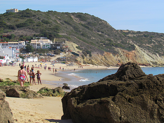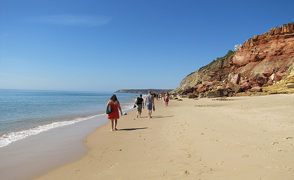 So we walked around the town on our first day there, taking in the sights and exploring the whole thing. The weather was just perfect--mid-80's with a mild breeze and practically no clouds. It was actually like that the whole 12 days we were in Portugal! Day 6: Salema and LagosWe decided to take a day and explore some of the other towns nearby in the Algarve region, since they are all quite small. First, we drove to Salema, a very tiny beach town that had a gorgeous beach jutted up against a rocky cliff. The water was absolutely perfect, and of course, I got sunburned. Here's one side: