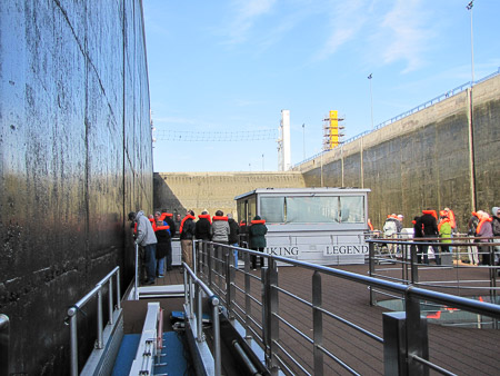 Yeay Slovakia! On our way there, we passed through the only lock out of a dozen that we could go through in daylight, so we all went up to the sundeck to check it out. It was pretty cool to see the water level rise so quickly!
