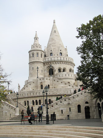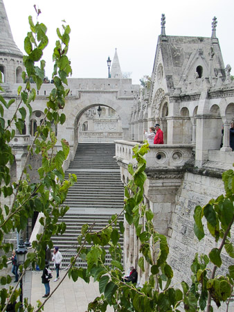 Fisherman's Bastion, on the other hand, is in a class unto itself. Perched on top of original Buda castle walls, it was created in the late 1800's as more of a decoration and never served as an actual fortress. It has such a unique combination of walls, turrets and almost arabesque motifs, and it's a bit of a maze to go through. It is accessible from atop next to Matthias Church or from below where you can then go up some stairs.