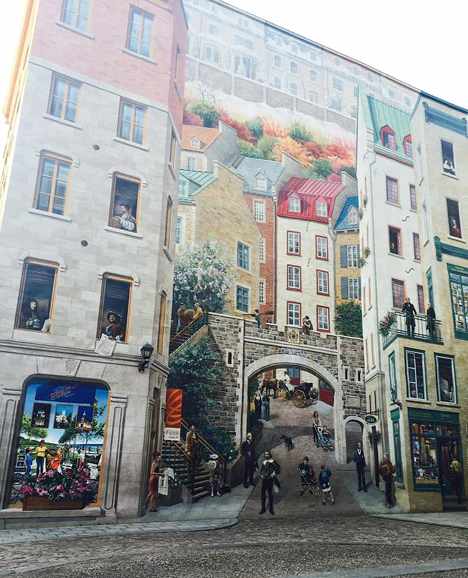 November 2015Okie dokie, as promised last year, I'm going to dive right in with a job update, since it's long overdue. A lot has happened since September! Right after returning from our trip to Canada, I got hired by The Container Store for part-time seasonal work through mid-January. They did not have any full-time openings so I'm stuck with as many hours as I can get. However, they won't schedule for more than 5 hours at a time, which is good and bad since it gives me some income, but not enough to live on. The Shack isn't giving me a good amount of hours either, so between the two I'm still basically only working part-time. At the end of September, I heard back from Moravia, a translation company where I had applied for a position as a Solutions Architect. They told me that they had offered the position to someone more experienced, but they really want me to work there and will keep their eyes open for a more suitable position. I was actually relieved to hear this because the more I thought about it, the more I wasn't sure that I was going to enjoy the traveling for work. It didn't sound like a lot, but I could see it interfering with all sorts of other things. So, turned out that they were creating a brand-new position called Solutions Content Coordinator, which is one level below the Solutions Architect and would involve creating, maintaining and organizing marketing and proposal content. So it would entail developing proposal templates and frequently-used content, combining data from the sales and solutions teams to build proposals for prospective clients, editing their content as necessary, and maintaining a centralized library of documentation and content. Right up my alley! I applied for the position the same day and a month later, I was offered the job! I accepted and begin on November 30th. It's work from home, the sales and solutions teams are all in the US, great benefits, great pay, and opportunity for bonuses. I can't wait to start down this new path and feel like it's just perfect for me because I can still apply my knowledge of the translation industry while at the same time be more of a technical writer than engineer. In other October news, the hockey season started and we once again got a partial game plan for the Colorado Avalanche. We attended the home opener against the Minnesota Wild and it was pretty embarrassing. We'll see how this season plays out but that was not a good start at all! In addition I went to see the musical If/Then and OMG if you have the chance to see it, go to it! It's about life choices and it really hit me hard at this time of my life for obvious reasons. In addition to my two jobs, I also signed up to become a volunteer for the Wild Animal Sanctuary! It's something that I've been meaning to do for some time now and I finally stopped feeling guilty about not doing it and, well, did it! I attended volunteer orientation and training and have my first day scheduled for early November. There are two main areas between which volunteers alternate: Animal Care (which is basically preparing their food) and Education (being on the guest walkway educating people and ensuring that they have a good time and behave). Every time I go there I just smile from ear to ear and am so happy there, so in addition to being a donor for years now, I definitely feel good about giving back to this wonderful place. One day I hope I can meet the founder, Pat Craig! Anyway, that's the big October update. In my last update I had shown you most of our Canadian trip in September, so here is our last stop, Québec City, which was my favorite. It totally feels like you're in France in that city, between the architecture, food, and language. I was getting very comfortable speaking French by the time we left! We spent the entire time in the old city, which dates back to the 1700's and is just too adorable. I loved the old stone houses, the little balconies, and the narrow streets. Here's a mural along the side of a huge building displaying Québec's heritage and pastimes.