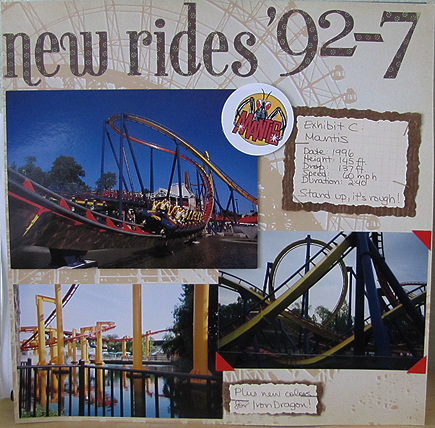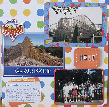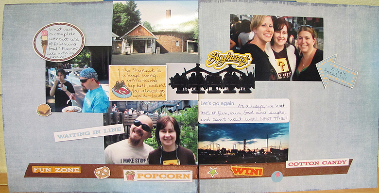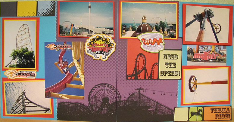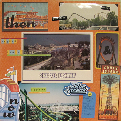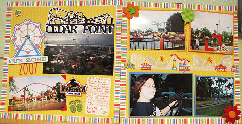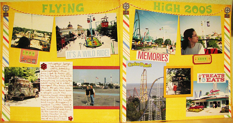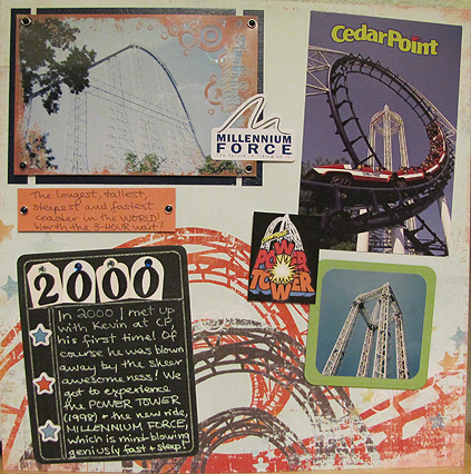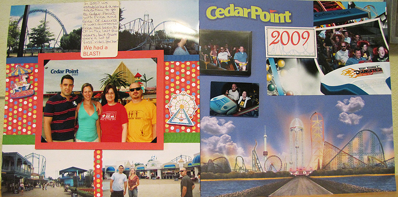 October 2011Yeay it's my favorite month of the year! And hockey is back! September was pretty low key for us. I spent a lot of time studying and scrapbooking. I'm studying to take the Project Management Institute's certification to become a certified PM. I'm doing this because the company is paying for it, and it's a great item on my résumé. However I am actually learning things that are applicable to my job right now, so I'm pretty stoked about it. It takes around one year to study for it and I'm most of the way through the book. I started studying in June and the plan is to take the exam in January or February. As for scrapbooking, well I've made huge strides! First, I finished my Cedar Point album! Yes, finished! Well, caught up to the present is more like it, since we are most certainly going back there over and over again to add more pages! So the first 15 pages of the book can be found on my August 2011 update. Here is the second half!
