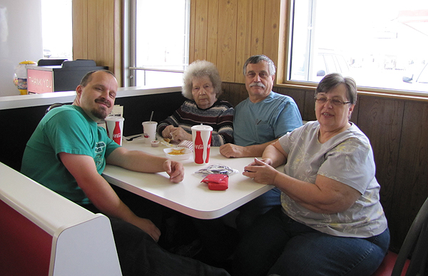 October 2012Wow, September flew by already! It was a month of cooler temperatures, the start of football, and getting back into the swing of hockey. Labor Day weekend was calm and relaxing, and I was able to get a lot of scrapping done. I'm just now starting to scrapbook our trip to Spain from December, oye ve! We also met up with friends Sean and Steph to see "The Book of Mormon" musical in Denver, which was beyond hilarious, and have a nice dinner. Other than that, we took a road trip to North Dakota, to visit JC's grandmother. It's a loooong 10-hour drive, so we left early Friday morning and arrived there at 5:30. Most of the trip was through Wyoming, but then we crossed into South Dakota and then into Dickinson, North Dakota. We visited with JC's grandmother briefly at the nursing home before going grocery shopping, getting dinner and crashing. We stayed at her house in Belfield, a small town just 15 minutes away from Dickinson, which was built by JC's grandfather in the 1960's. It's VERY small: one story with a basement, with only two bedrooms, the smallest bathroom ever, a kitchen and one living room. It's fascinating to imagine that JC's grandfather built the whole house by himself...and that SEVEN people lived in it! On Saturday we visited again with JC's grandmother and took her out for a while. We had lunch at a very popular local hangout called The Dairy Barn where I had a pizza burger--a hamburger with mozzarella cheese and tomato sauce!